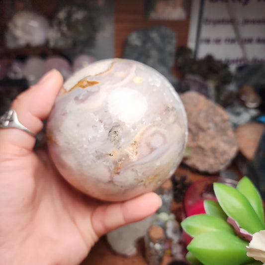 93mm Flower Agate Pink/Purple Amethyst DRUZY Sphere