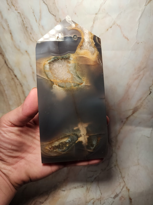 8th Vein Ocean Jasper Tumble with Pinks and Druzy