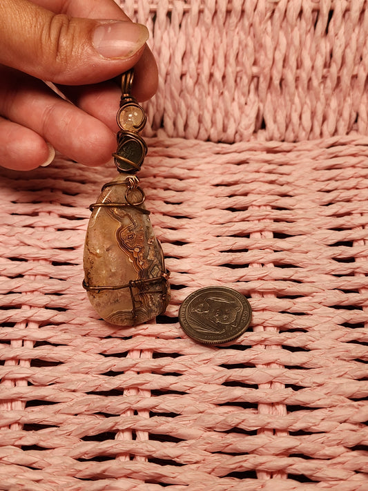Moldavite, Crazy Lace Agate & Golden Healer Pendant