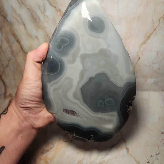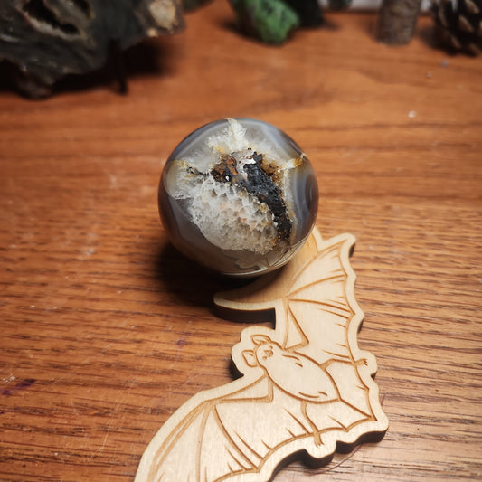 Banded druzy black flower agate sphere