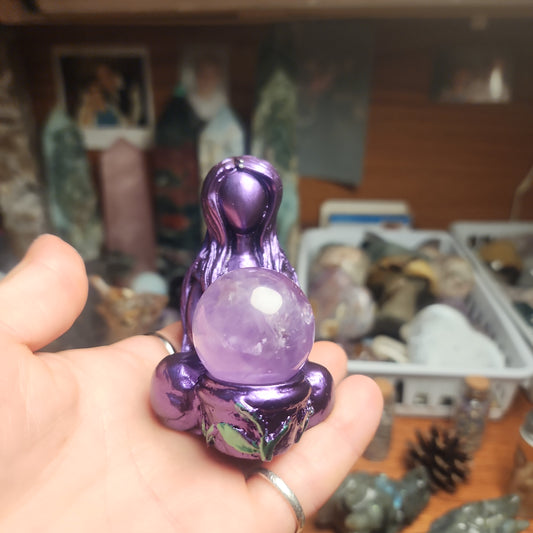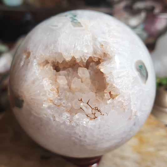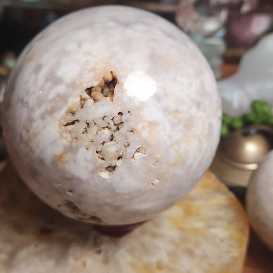 93mm Flower Agate Pink/Purple Amethyst DRUZY Sphere
