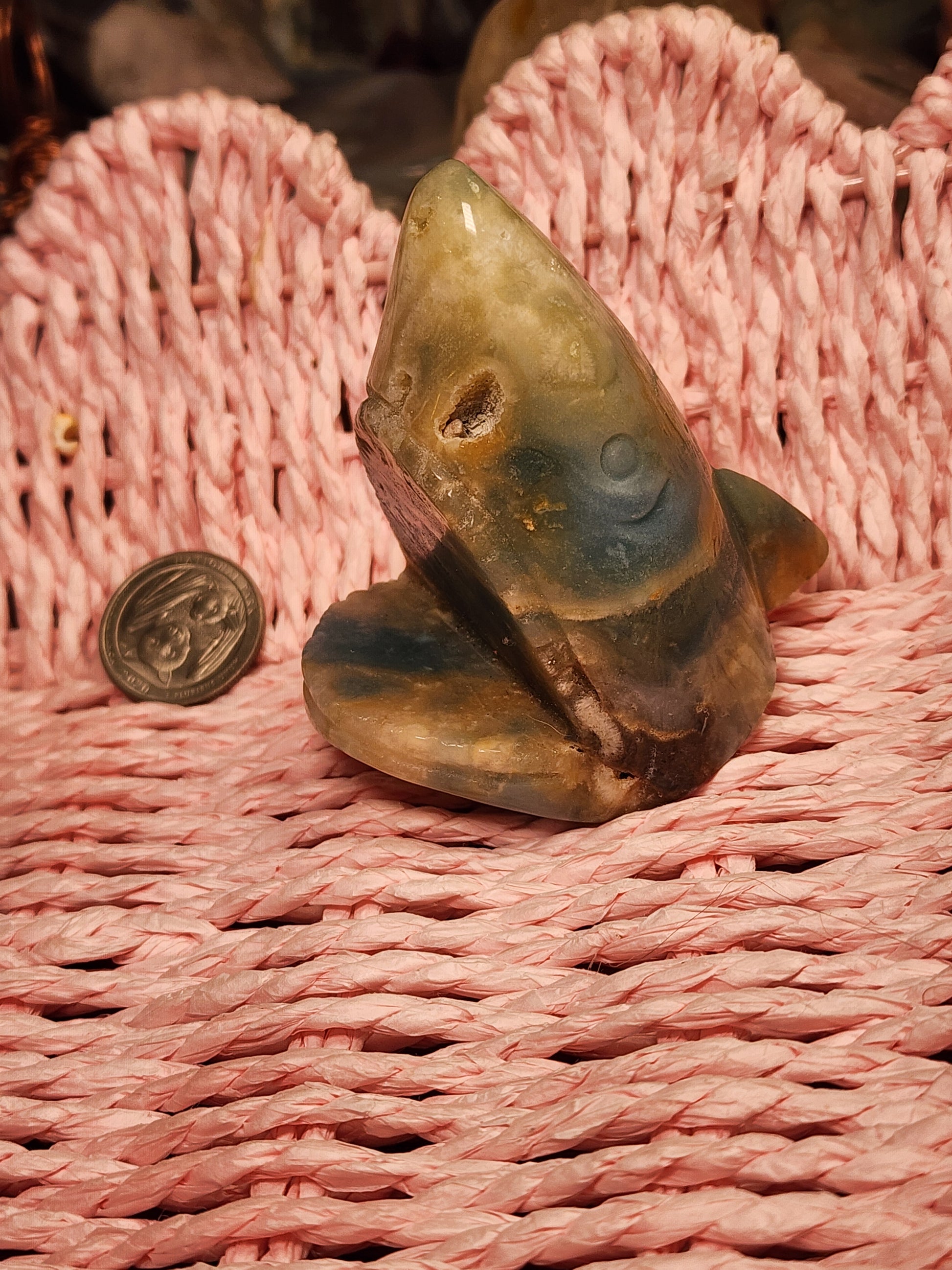 Beautiful blue in this shark head. I named him Willy. (Name can be changed upon adoption)ย