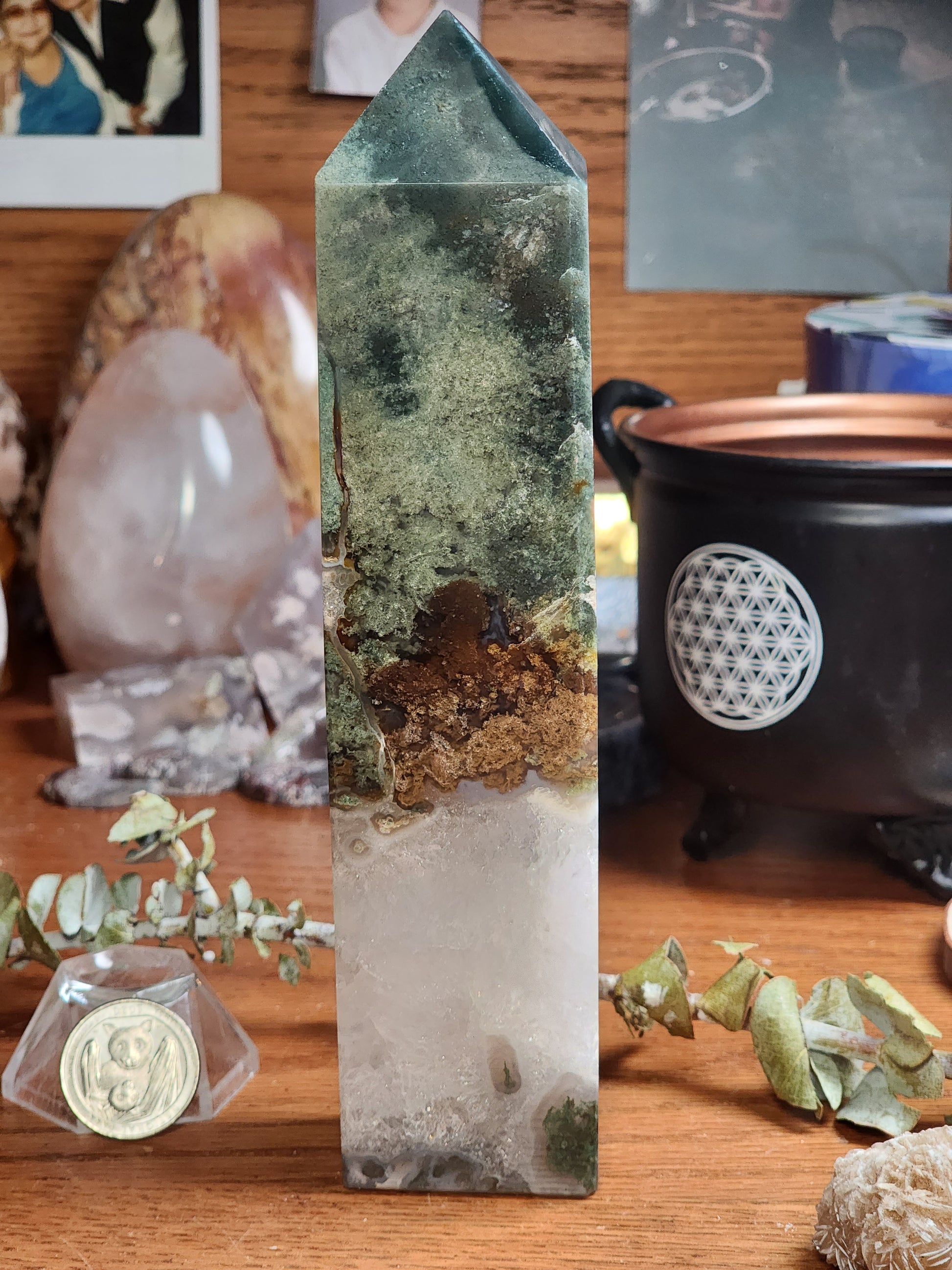 Large Moss agate tower