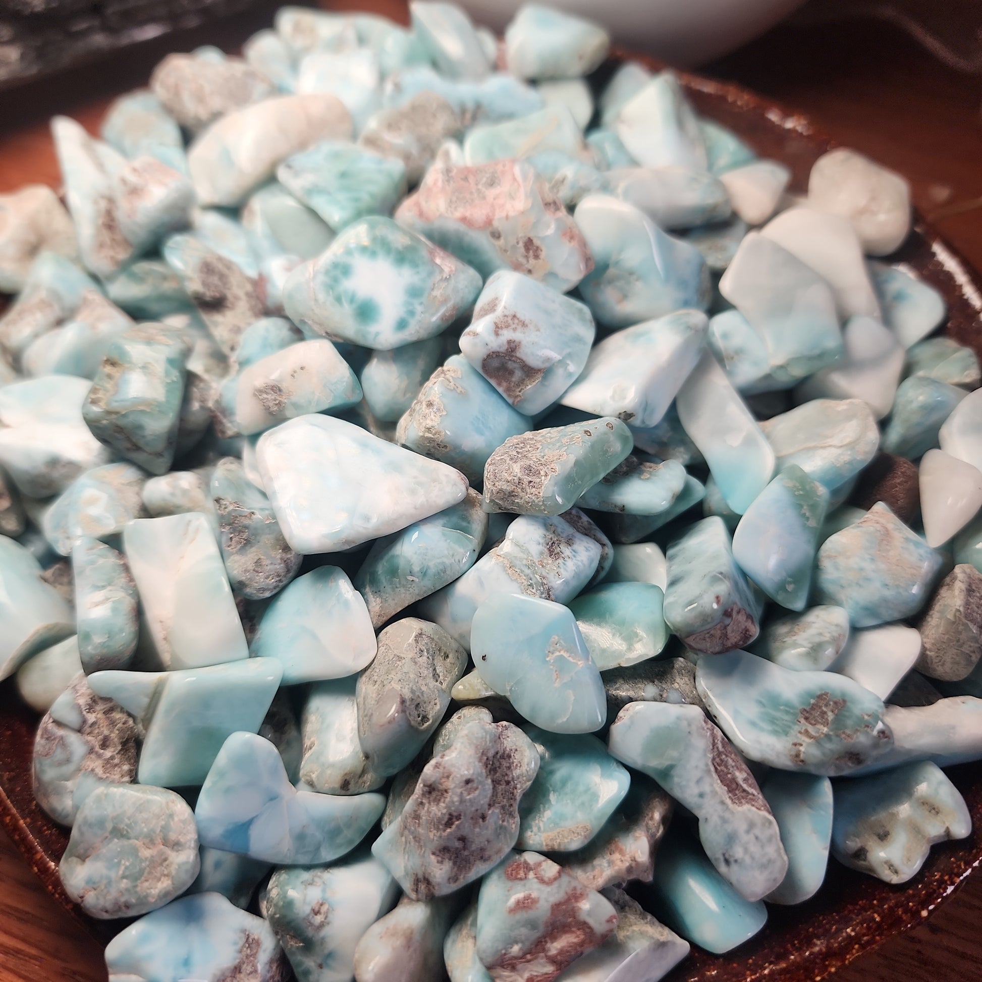 Larimar is said to enlighten and heal in a physical, emotional, mental and spiritual way. It stimulates the heart, throat, third eye and crown chakras facilitating inner wisdom and outer manifestation. It represents peace and clarity, radiating healing and love energy.